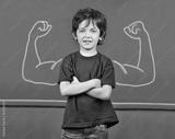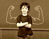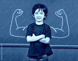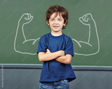 Strong child with muscles in school