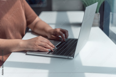 Woman Using Laptop Computer for Work Social Network and Browsing, Digital Marketing, Communication, Technology to Connect Online Concept.