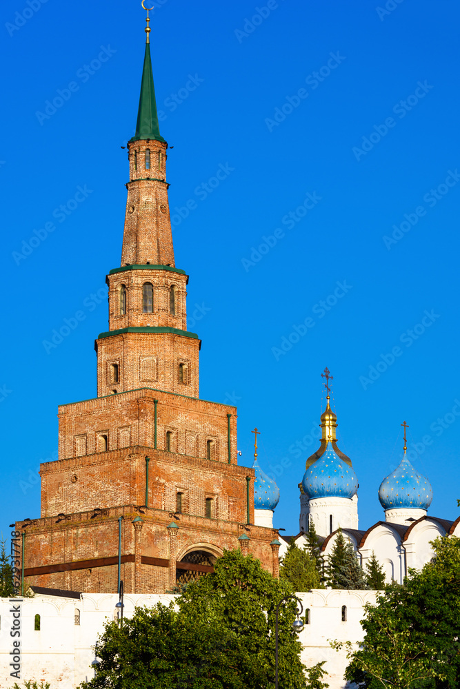 Kazan Kremlin in summer, Tatarstan, Russia. View of old Suyumbike Tower.