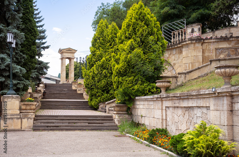 Green old street in summer in Yessentuki city, Russia