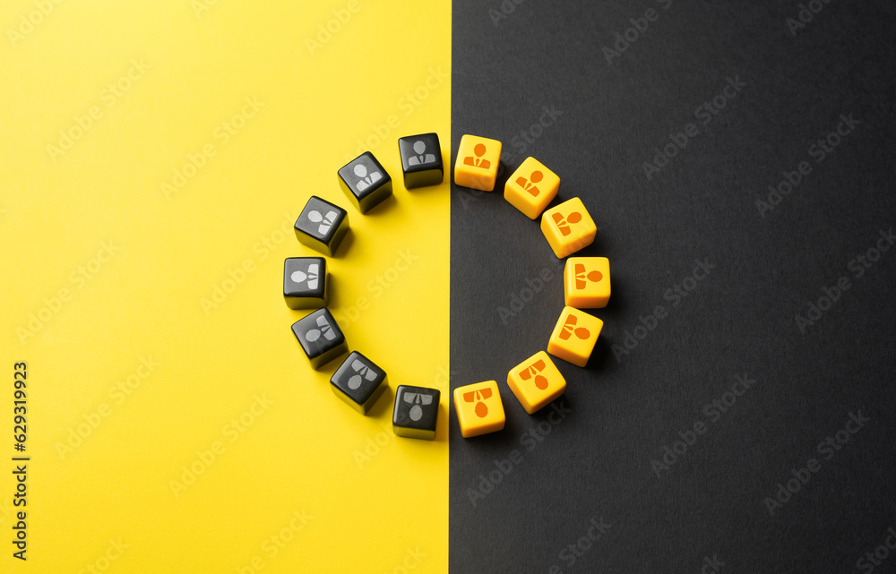 Combining two groups into a single team to solve problems. Large group of people in the meeting circle. Unity, collaboration. Commonwealth, community of owners. Discussion, conference.