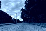 Droga ciągnąca się przez osiedle o letniej porze w obszarach podmiejskich zachodniej Polski