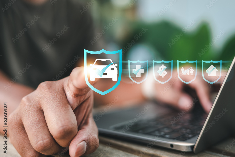 insurance, supporting, health, financial, life, life insurance, investment, technology, assurance, retirement. touching shield hud with dollar and asset icons, exploring insurance and retire planning.