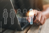 management, resource, employee, team, human, relationship, strategy, organization, connection, leadership. man sorting personal hud notebook efficient task management innovative technology solution.