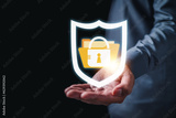 technology, business, firewall, archive, security, transmission, privacy, protection, safety, verification. a palm on hand file transmission, archive technology to protect and safety. firewall to safe