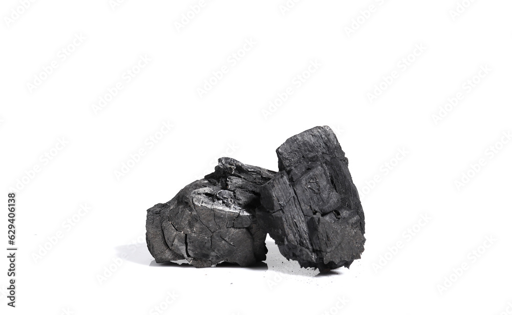Natural charcoal isolated on white background Traditional natural charcoal or wood charcoal isolated on white background.