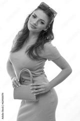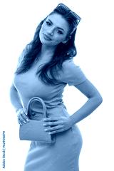 Positive young woman with colorful outfit on isolated white background.