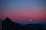 Crescent Moon, planet conjunction and landscape scenery silhouettes.