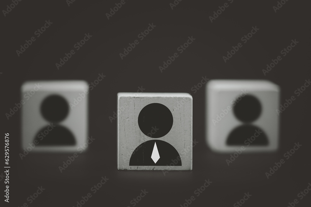 One people icon in front any wood block. Relationship Management structure Human Resources HR management recruitment concept. leader concept