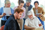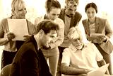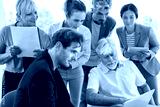 Team of business people discussing over laptop while planning strategy in conference room at office
