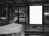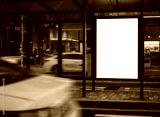 Blank white Banner light box Media Advertisement at bus stop City street Mock up board template