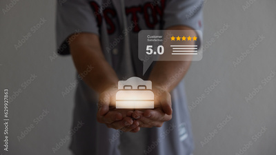 User gives rating to hotel service experience on online application, Customer review satisfaction feedback survey concept.