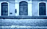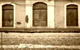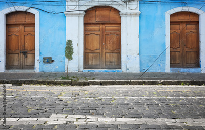 Street view of an old building facade, architecture background, Riobamba, Ecuador.