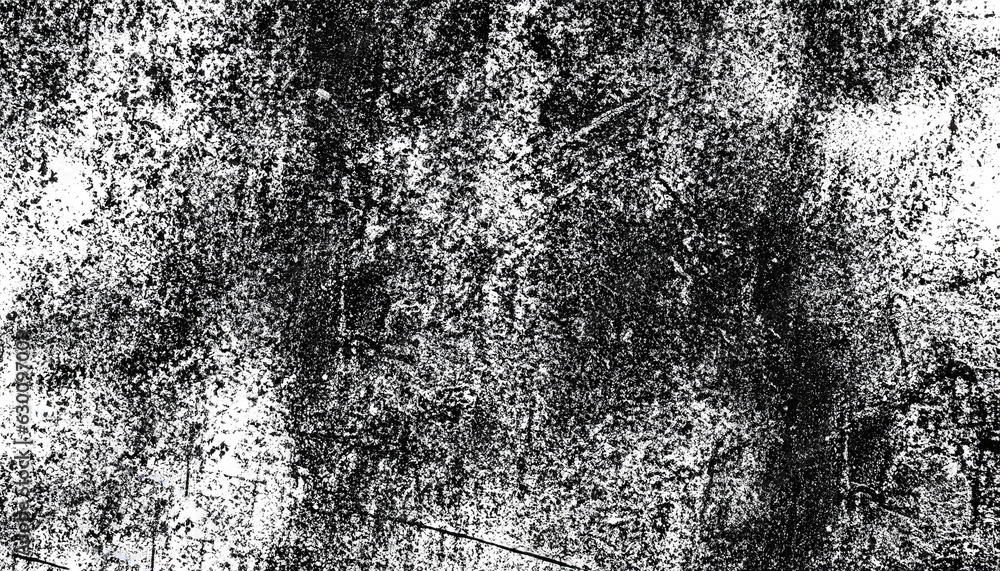 The grunge texture is black and white. Monochrome abstract background. Pattern of scratches, chips, and paint strokes. Black smudges, scuffing, wear and tear