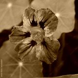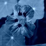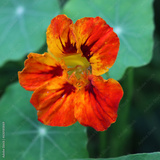 Nasturtium, plant with round leaves and bright orange, and red ornamental edible flowers. Tropaeolum
