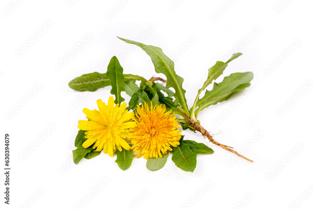 Common dandelion (Taraxacum officinale) on white background