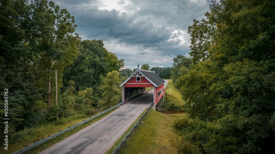Historic Netcher road covered bridge in Ashtabula county Ohio state, USA.