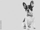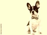 Charming puppy and a bow-tie in the colors of the American Flag. Close-up, indoors. Isolated background. Studio shot. Congratulations for family, loved ones, friends and colleagues. Pets care concept
