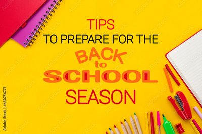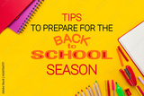 Tips to prepare for Back to School. Top view flat lay concept. Lettering, colored paper, multi-coloured letters, supplies for school