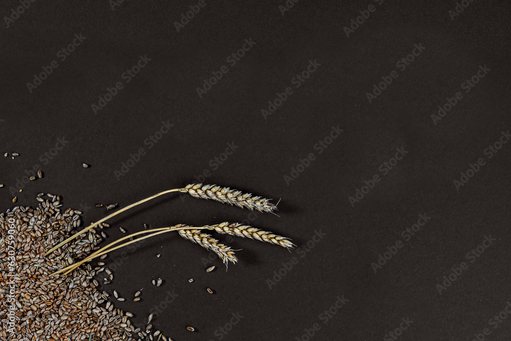 Grain and three spikelets on a black background. Symbol of the tragedy genocide of the Ukrainian people in 1932