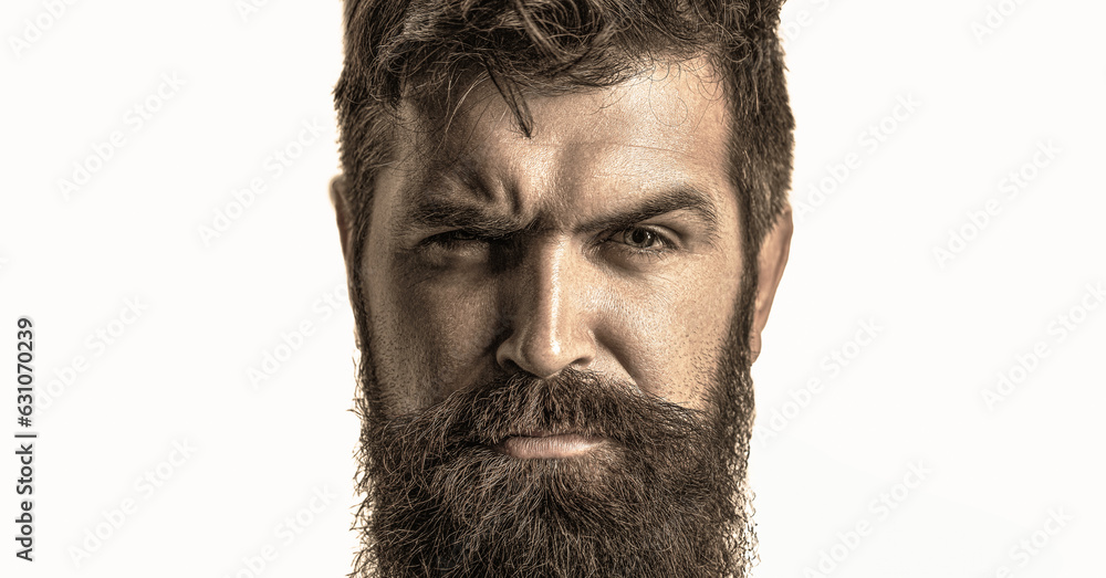 Handsome brutal male. Sexy closeup portrait of brutal handsome male, black beard. Portrait brutal bearded man. Portrait of masculinity. Sexy look of male. Hipster man beard, mustache