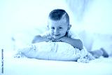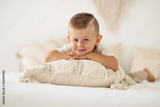 Portrait of a small cute boy lying on the bed.