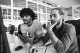 Male freelancers argue about working in a coworking space office