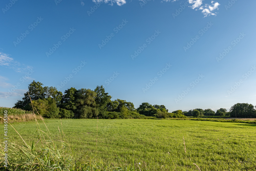 krajobraz szerokiej łąki, panorama zielonych terenów w zachodniej Polsce