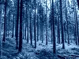 Views of tall fir trees on the way to Conic Hill, Scotland