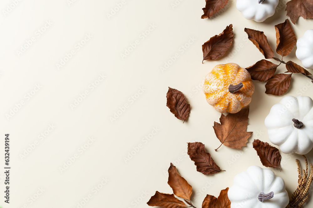Autumn fall thanksgiving day composition with decorative pumpkins