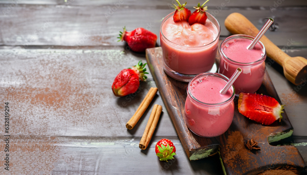 Delicious and healthy strawberry, cinnamon and star anise smoothies.