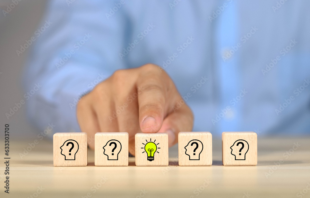 Ideas and creativity, personality, uniqueness, outstanding, creative process and problem solving on wooden dolls