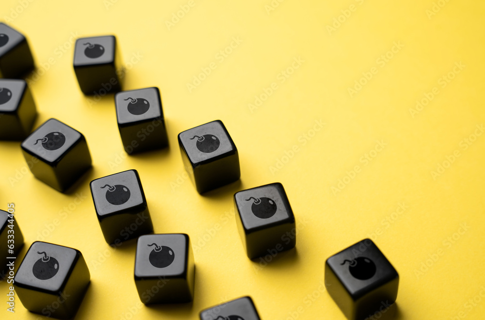 Area of danger through bombs. Concept of difficulties and danger. Place for text. Plan of action on escape from a hazardous or risky circumstance. Navigate towards safety. Don't take risks.