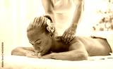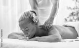 Beatiful woman is enjoying relaxing back massage in cosmetology spa centre