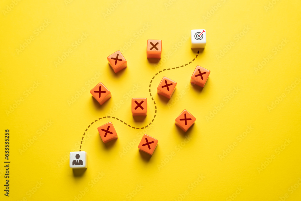 Achieve the goal bypassing obstacles. Progress and professional growth. Success, self improvement skills and abilities. Achieve life goals. Reaching career milestones. Progress towards a fulfilling