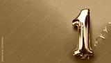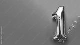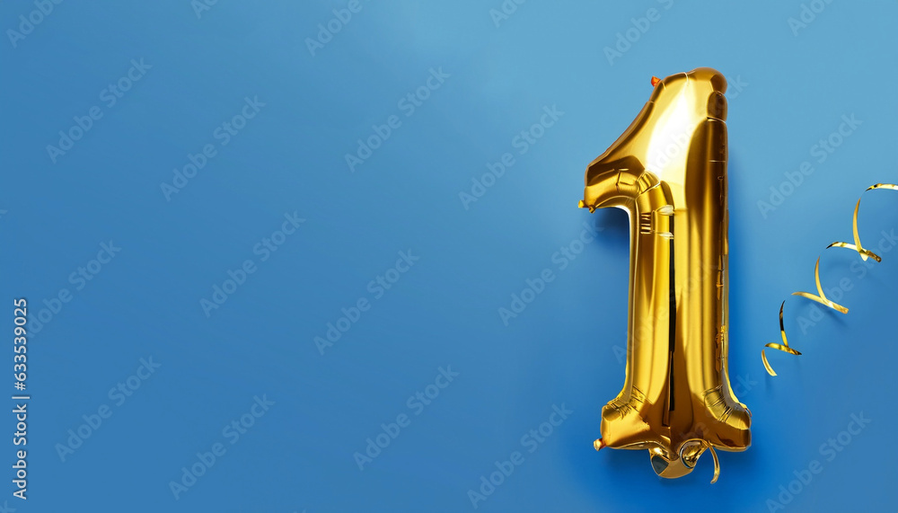 Banner with number 1 golden balloon with copy space. One year anniversary celebration concept on a blue background.