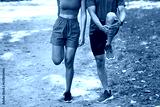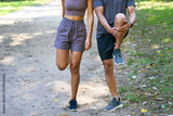Cropped shot of couple stretching legs for warm up or cool down after running