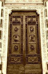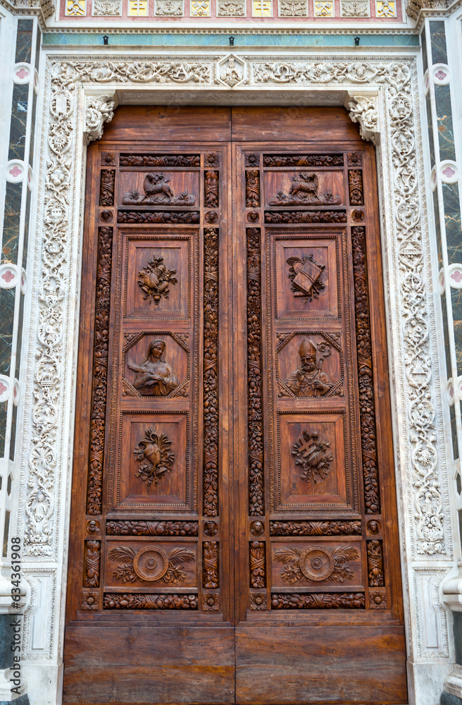 Entrance door of Basilica di Santa Croce in Florence, Italy
