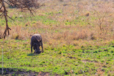 Common warthog (Phacochoerus africanus) in savanna in Serengeti national park, Tanzania