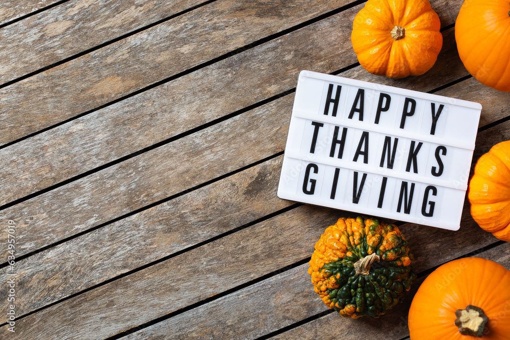 Autumn fall thanksgiving day composition with decorative pumpkins