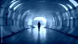 A person standing in the middle of a tunnel