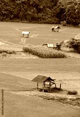 Top view of terrace rice field with old hut at Nan province, Thaoland.