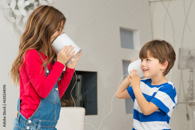 Sibling Playing With Tin Can Phone