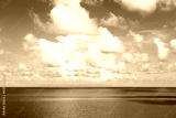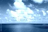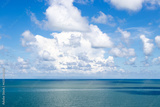 Beautiful calm turquoise color sea and blue sky with white color cloud background