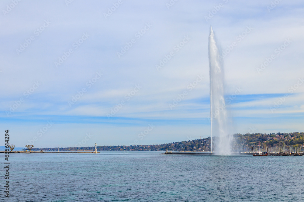The Jet d'Eau fountain in Lake Geneva in Geneva, Switzerland