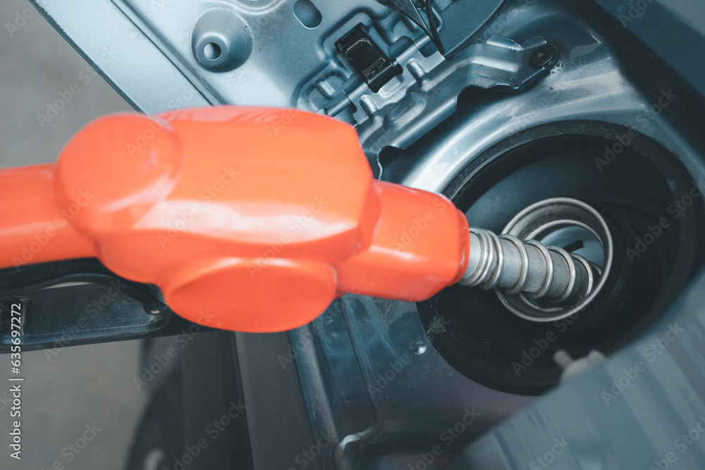 Refueling car at the refuel station. Car fuels concept