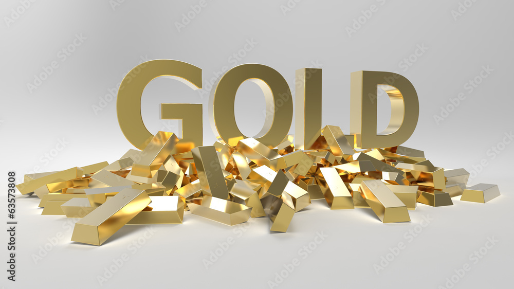 Gold as word with gold bars