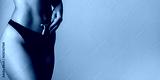 Shaving machine in panties. Girl health and intimate hygiene. Epilation concepts. Slim woman with perfect body in panties holds razor