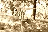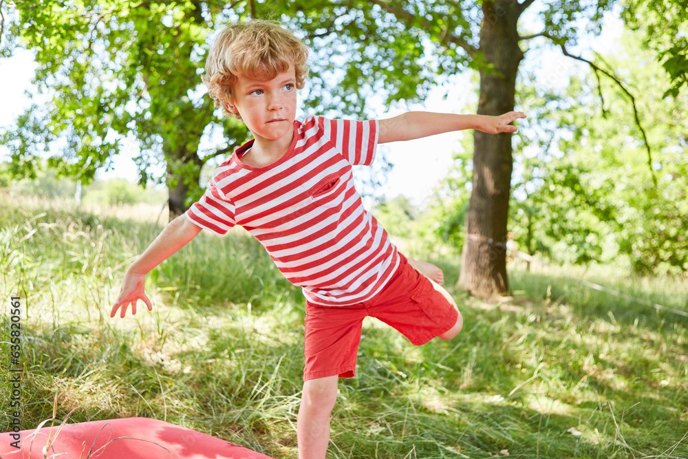 Playful boy balancing in garden