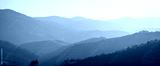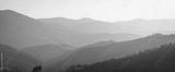 Wide panoramic landscape of Carpathian mountains. Ukraine. Tonal perspective.